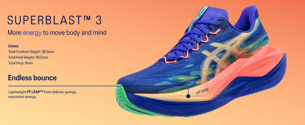 The SUPERBLAST™ 3 shoe helps to provide a supercharged feel underfoot, thanks to its advanced foam updates.