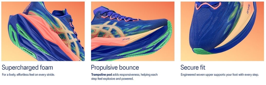- Trampoline-inspired sole shape - The sole's bottom design promotes a higher energy return for an enhanced foam bouncing effect during toe-off